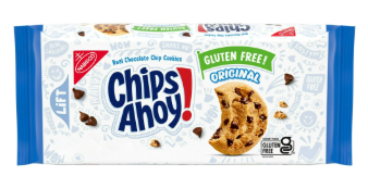 Biscoitos crocantes CHIPS AHOY! feitos com uma mistura exclusiva de farinha de arroz e aveia sem glúten e feitos com gotas de chocolate de verdade.