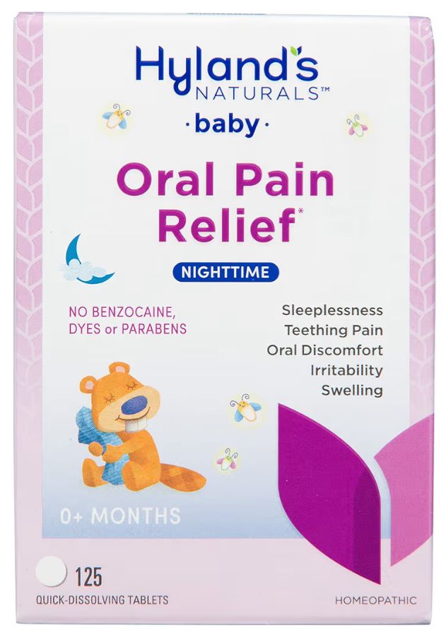 Quando o bebê não consegue dormir, e a dor oral noturna for a culpada, tente o alívio da dor oral noturna do bebê da Hyland para obter uma maneira natural de aliviar a dor, irritabilidade, inchaço e, ocasionalmente, insônia devido ao desconforto oral. A Hyland's usa apenas ingredientes ativos naturais preparados homeopaticamente, como camomila e arnica.
