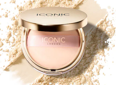 Um pó solto, refletor de luz, com acabamento aveludado fosco e retocado.