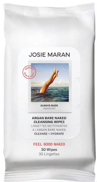 Um conjunto de lenços umedecidos sem perfume para rosto e corpo, feitos com fibras biodegradáveis, óleo de argan e aloe vera, para remover facilmente sujeira, suor, oleosidade e maquiagem sem agredir a pele.