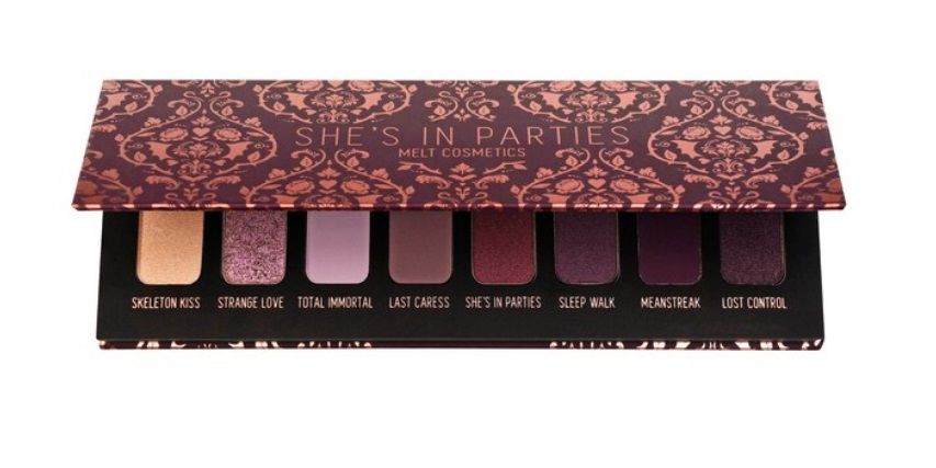 - 8 x sombras em Skeleton Kiss (osso cremoso com uma mudança de ouro rosa), Strange Love (lavanda suave com uma mudança lilás), Total Immortal (lilás discreto), Last Caress (doce adorável lilás), Ela está em festas (geada cor de vinho com reflexos de cobre e rosa), Sleep Walk (ameixa profunda), Meanstreak (ameixa mais escura), Controle perdido (ameixa escura escura com base preta).