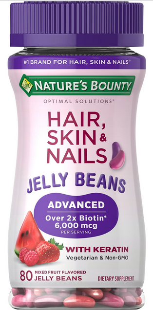 Embalado com 2x a quantidade de Biotina como nossa fórmula líder de goma para cabelos, pele e unhas, cada porção contém 6.000 mcg de Biotina para manter um cabelo bonito, pele brilhante e unhas saudáveis. Com o mesmo sabor delicioso de morango de nossas gomas originais para cabelo, pele e unhas, nossa fórmula avançada não é OGM e agora inclui vitamina A, que desempenha um papel essencial na manutenção da saúde da pele. Contêm antioxidantes Vitamina C e Vitamina E. A vitamina C está envolvida na produção e formação de colágeno, atuando como a base para uma pele brilhante, enquanto a vitamina E é um nutriente encontrado na pele mais externa superfície.