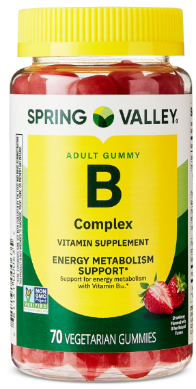 Suplemento Vitamínico Complexo B em Gomas Vegetarianas da Spring Valley. Formulado com uma mistura de vitaminas B essenciais, incluindo vitamina B12, este suplemento ajuda a converter alimentos em energia e auxilia no metabolismo energético geral.* Estas saborosas gomas vegetarianas com sabor de morango são certificadas pelo Projeto Não-OGM e feitas para quem prefere uma alternativa fácil e mastigável aos comprimidos.