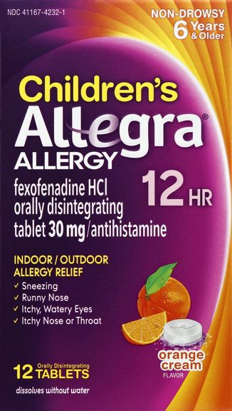 Para crianças de 6 anos ou mais; alívio rápido dos sintomas da alergia, com duração de até 12 horas. Esses comprimidos derretem na língua. Allegra alivia os sintomas de alergias causados por alérgenos externos e internos como espirros, coriza e olhos lacrimejantes, que podem durar até 12 horas.
