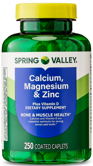 Nossos comprimidos revestidos de cálcio, magnésio e zinco Spring Valley com vitamina D3 são formulados para promover a saúde óssea e muscular.* O cálcio e a vitamina D3 são nutrientes essenciais para dentes e ossos fortes, o magnésio é importante para a saúde dos nervos e músculos, e o zinco está envolvido no metabolismo e pode auxiliar no crescimento adequado.* Uma porção de três comprimidos revestidos fornece 1.000 miligramas de cálcio, 400 miligramas de magnésio, 15 miligramas de zinco e 15 microgramas (600 UI) de vitamina D3. Esta fórmula não contém glúten, lactose, corantes ou aromatizantes artificiais. Você pode ter certeza de que os comprimidos revestidos de cálcio, magnésio e zinco Spring Valley com vitamina D3 são produzidos com rigorosos padrões de qualidade e contam com nossa garantia de qualidade.