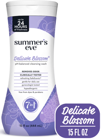 O sabonete líquido diário feminino Summer's Eve Delicate Blossom remove odores