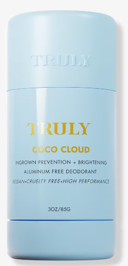 O desodorante Coco Cloud da Truly clareia, combate odores e elimina pelos encravados. Este desodorante limpo e sem alumínio esfolia suavemente e desobstrui os folículos com ácido mandélico e óleo de coco para revelar axilas suaves e frescas sem deixar manchas amarelas.