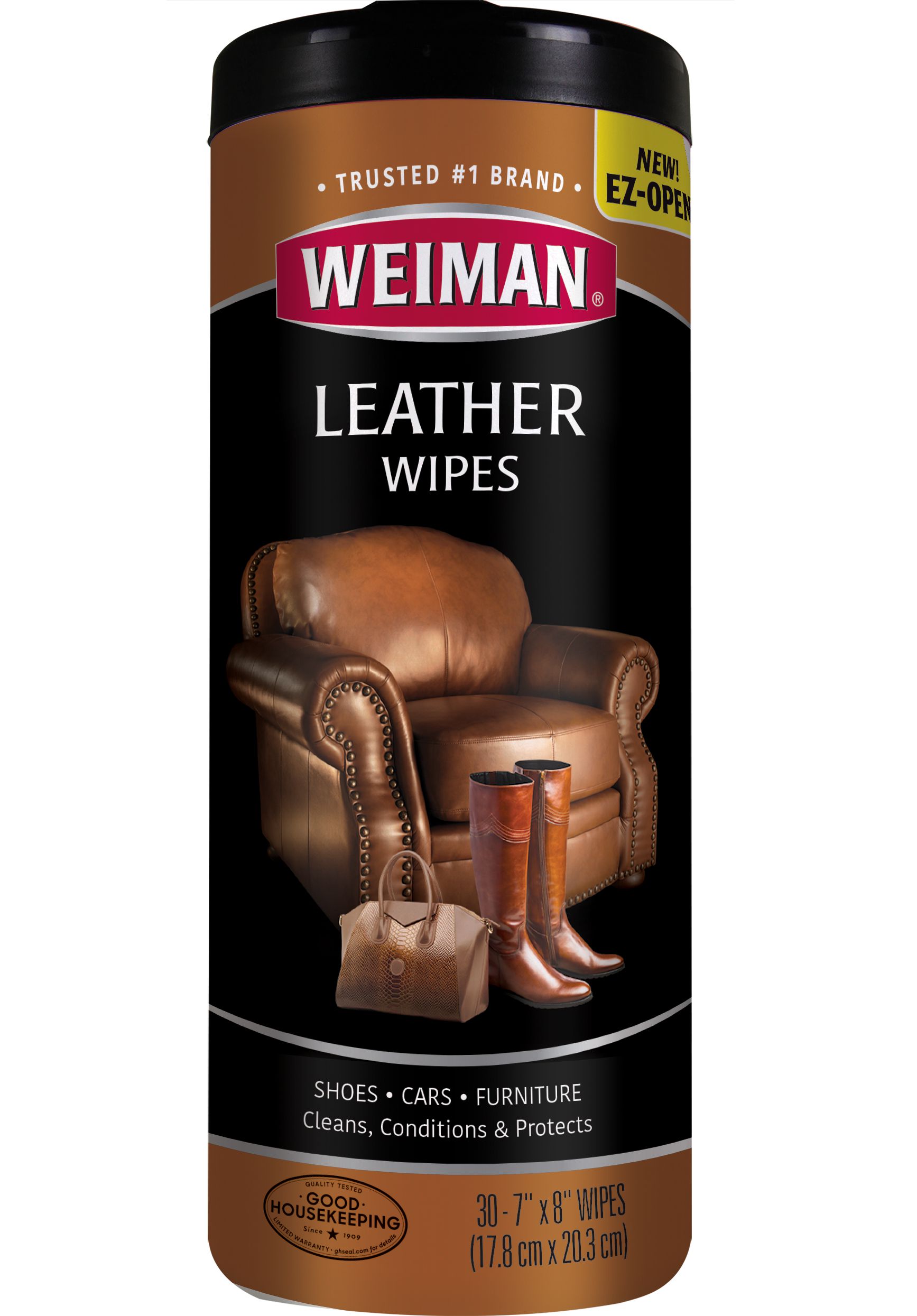 Estes lenços de limpeza são especialmente formulados com 6 produtos de limpeza naturais e óleos que instantaneamente restauram a flexibilidade e o brilho do couro. Eles são adequados para interiores de automóveis, malas, móveis e muito mais. Com uma fórmula suave, eles não danificam o tecido. Este produto limpa e condiciona em uma única etapa, facilitando o uso. Tem um aroma de limão e oferece protetor solar UVX-15 para proteção contra os raios UV prejudiciais. Estes lenços de limpeza não são tóxicos nem fosfatados. Eles podem ser usados em qualquer tipo de material que tenha um acabamento protetor sobre couro tingido.